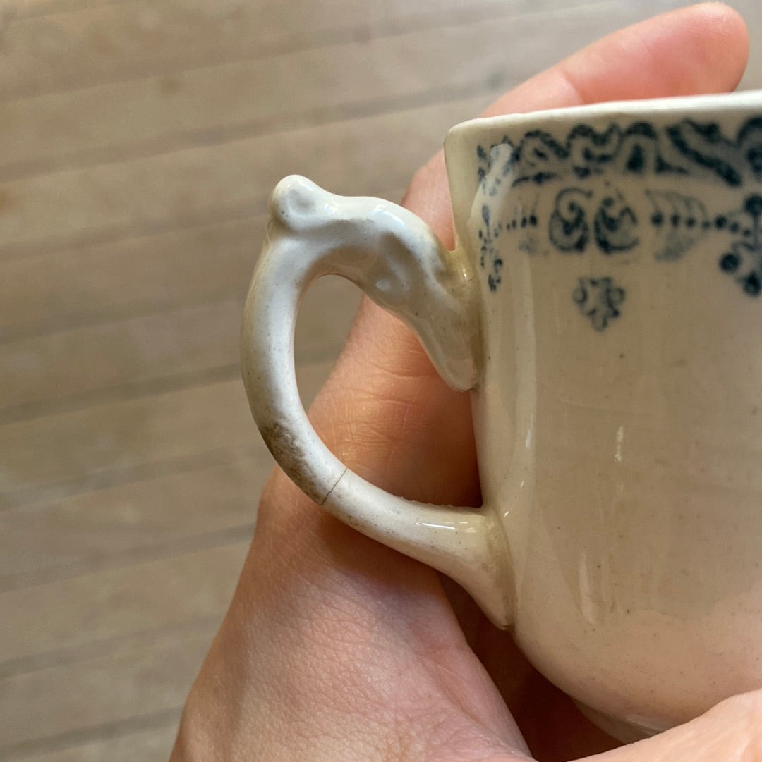 Very good condition apart from a very small chip (visible in the middle of the photo) and a cracked handle