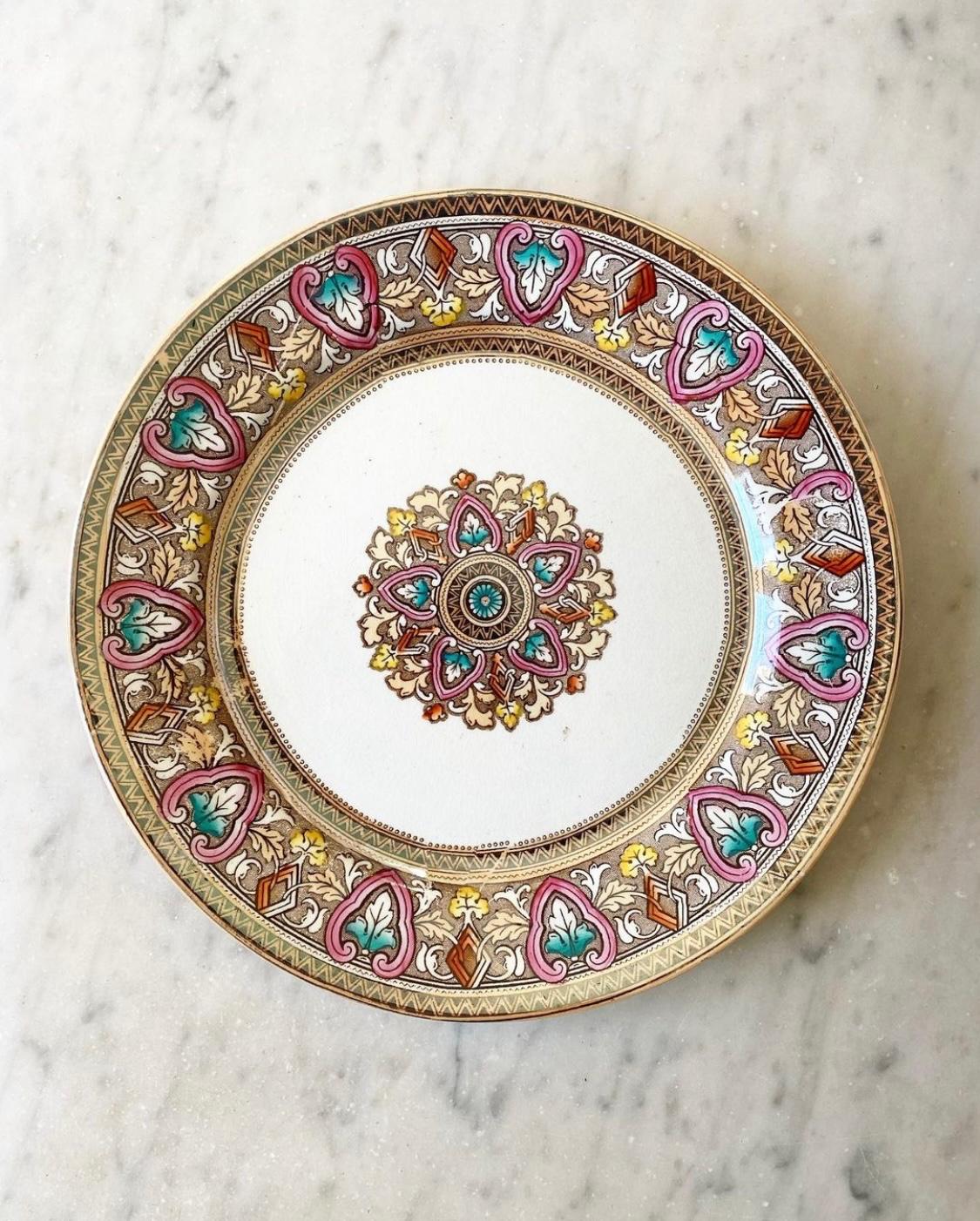 Assiette à dessert en faïence anglaise polychrome légèrement irisée