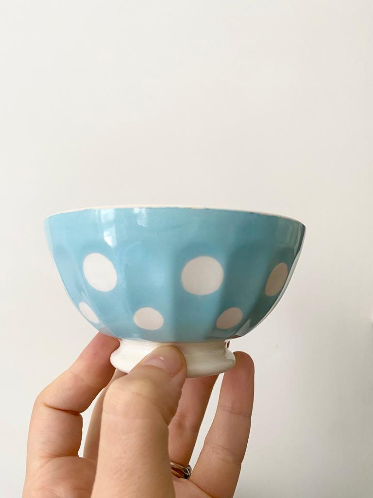 Small bowl with blue polka dots