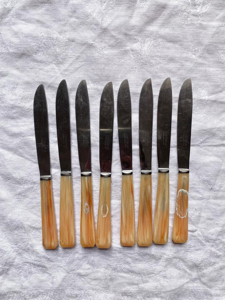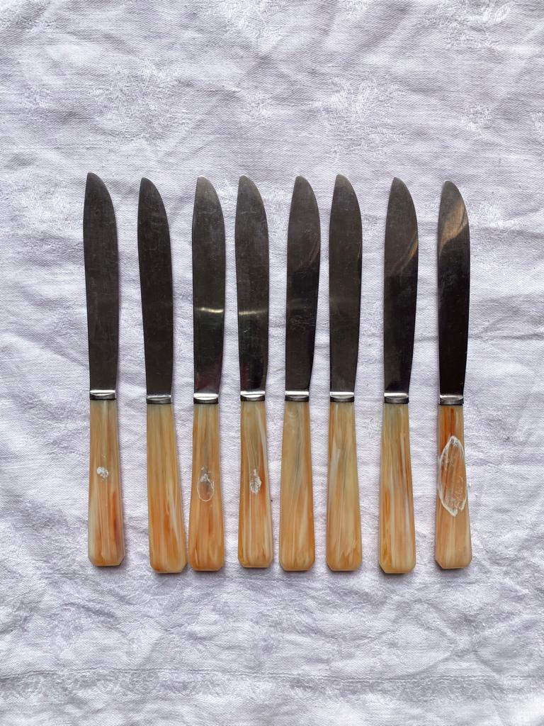Lot de 8 couteaux à fromage à manche en bakélite rosé