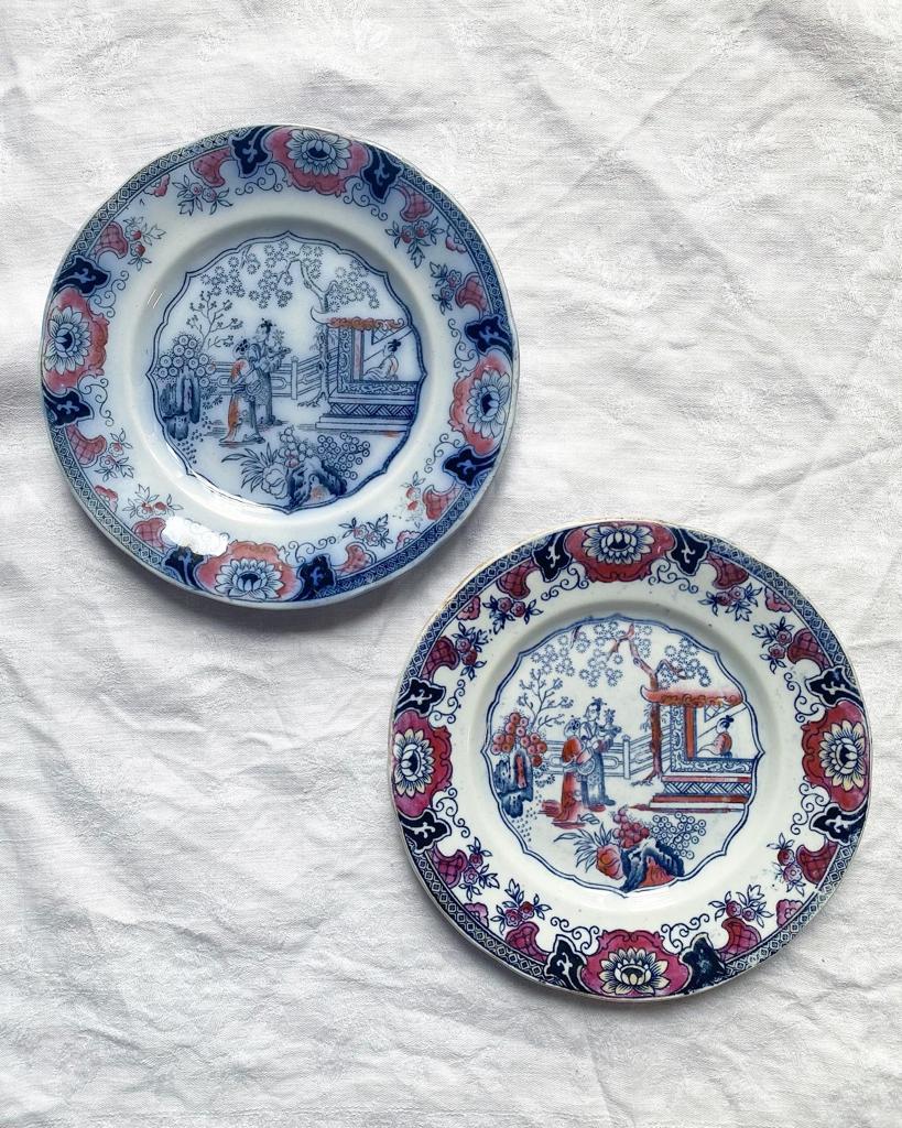 Lot de 2 assiettes à dessert en terre de fer polychrome