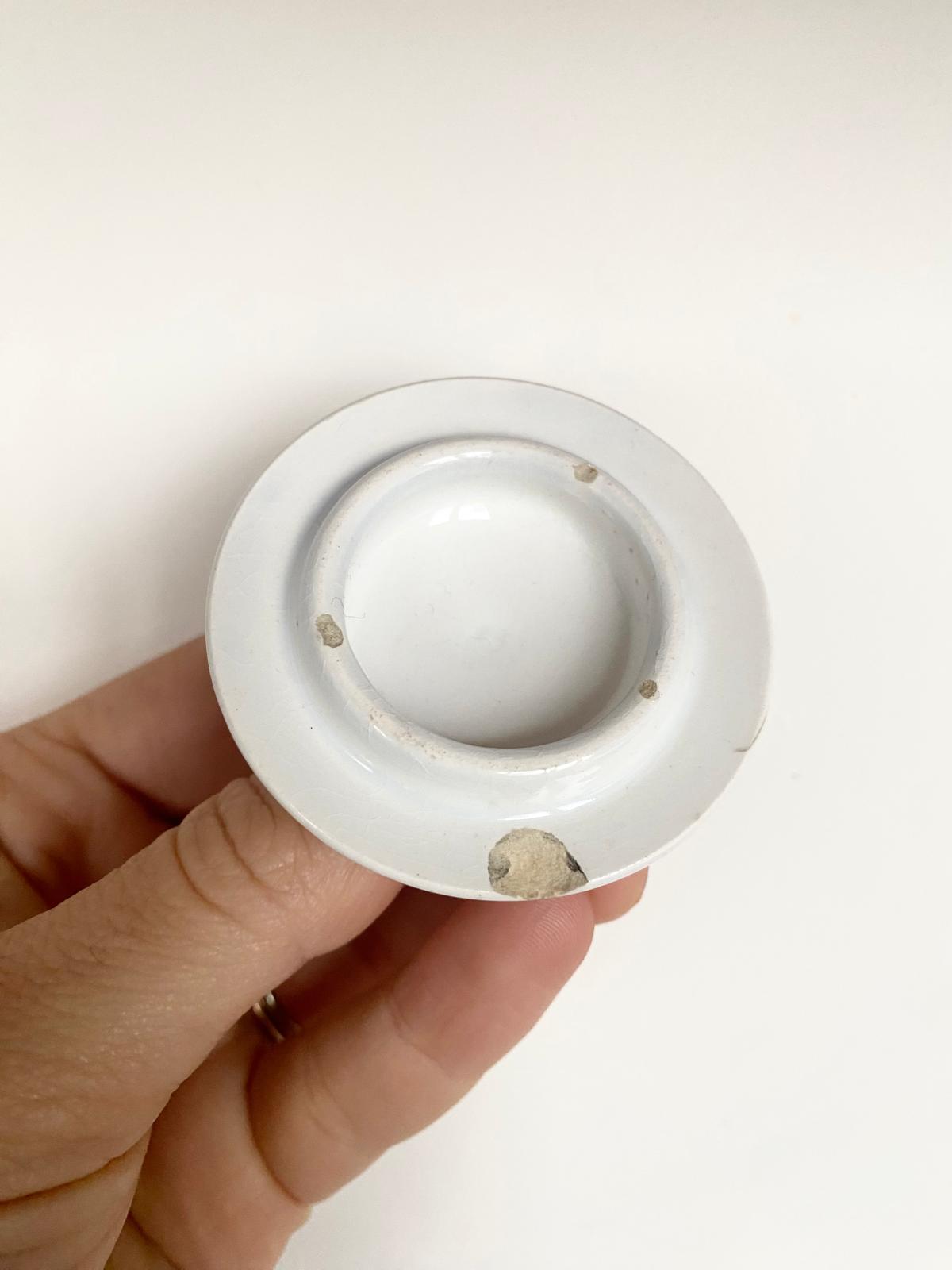 Très bon état mis à part un micro éclat sur le bouton du couvercle et un éclat sur le dessous du couvercle