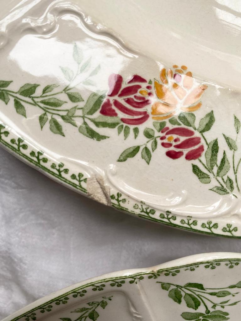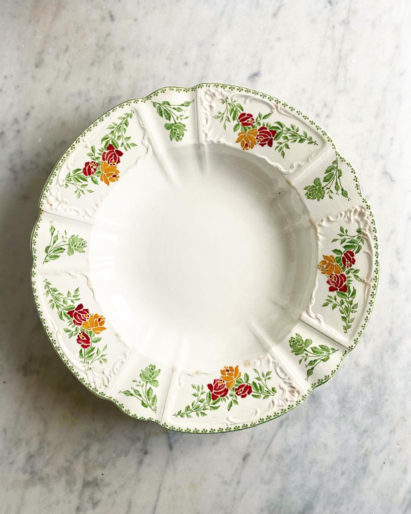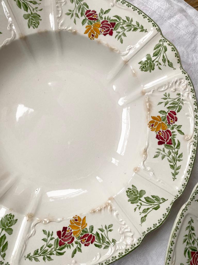 Lot de 6 grandes assiettes creuses en terre de fer polychrome