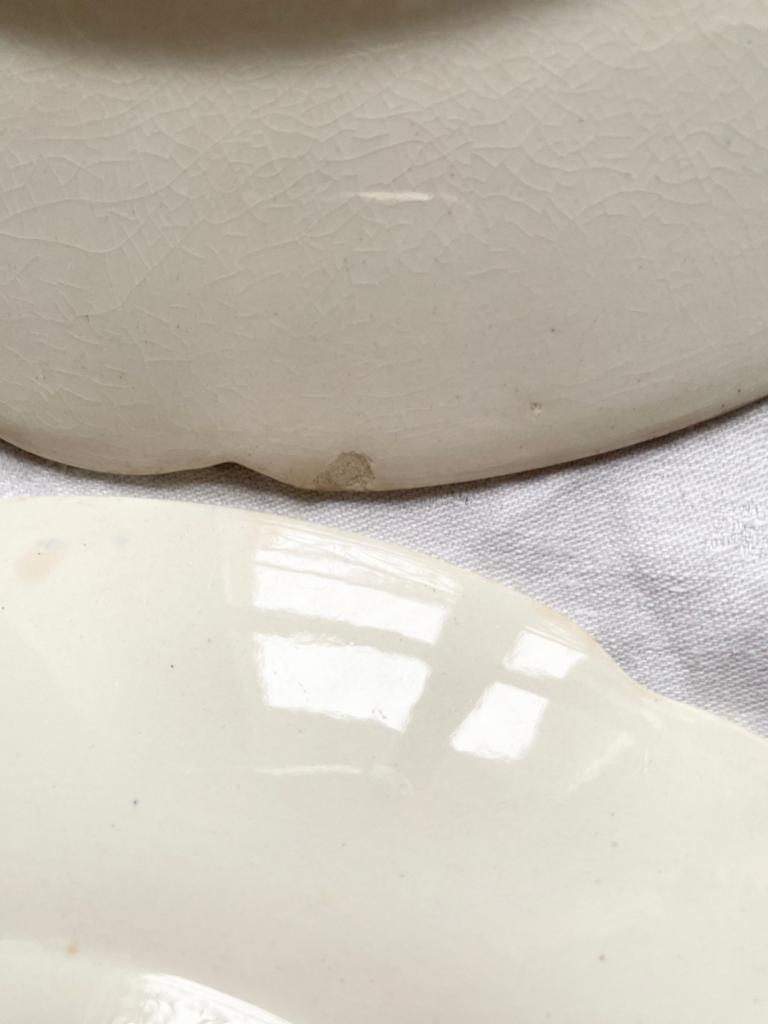 À noter une d’entre elles a un éclat, plusieurs ont des petites rousseurs et 2 d’entre elles des petits éclats à l’arrière invisibles de devant.