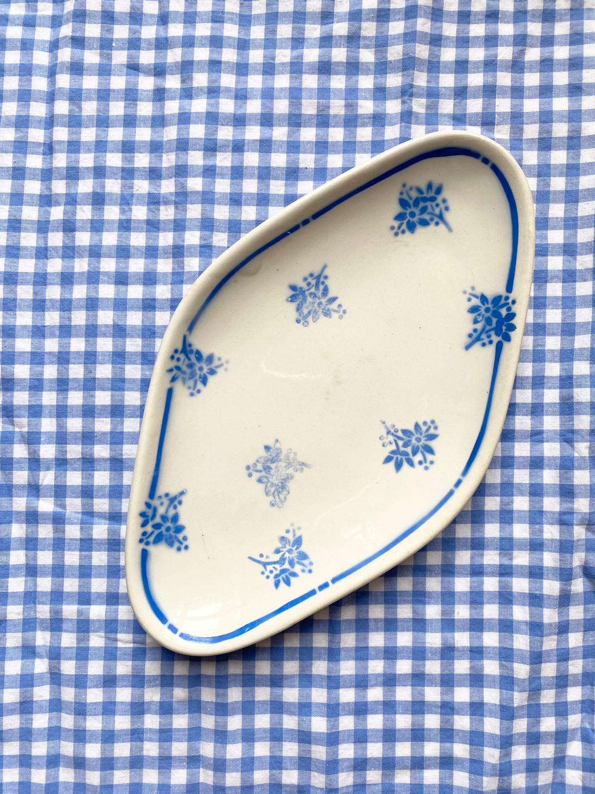 Ravier non estampillé à décor de fleurs bleues