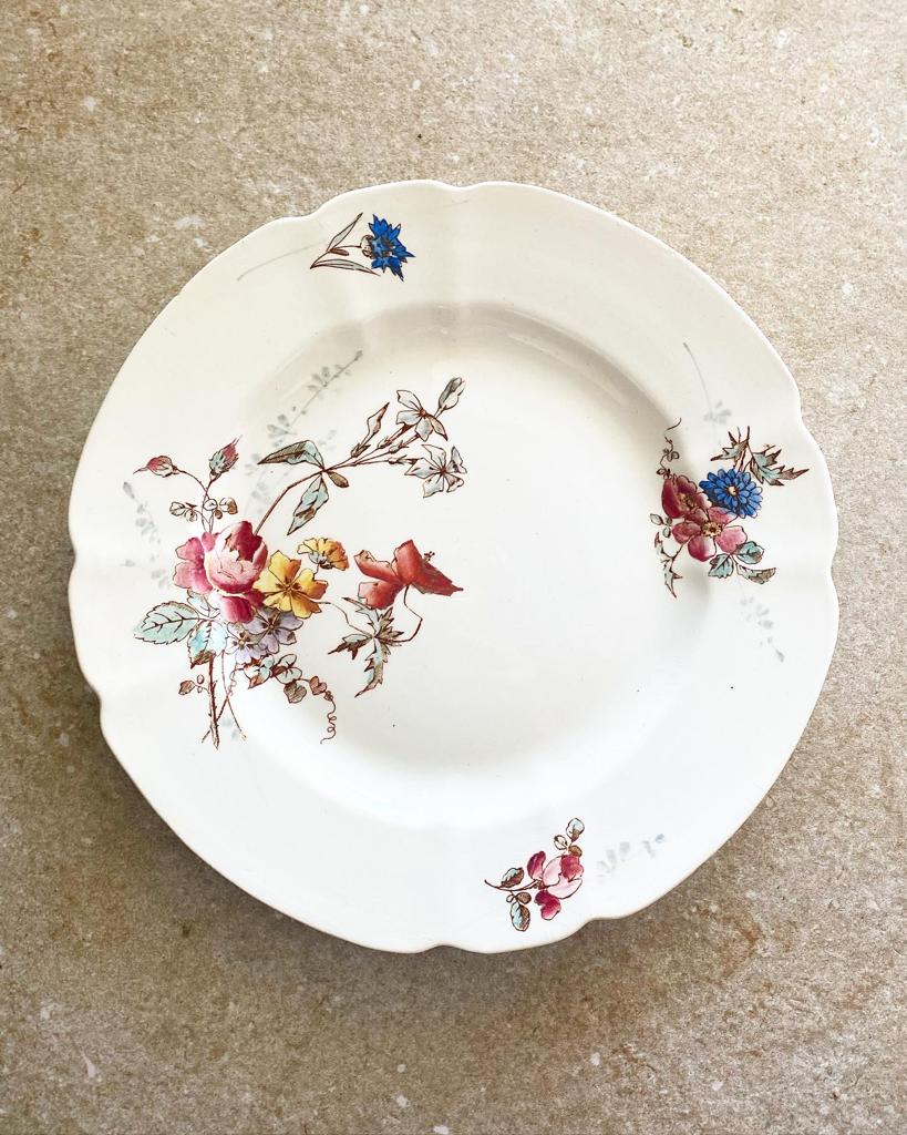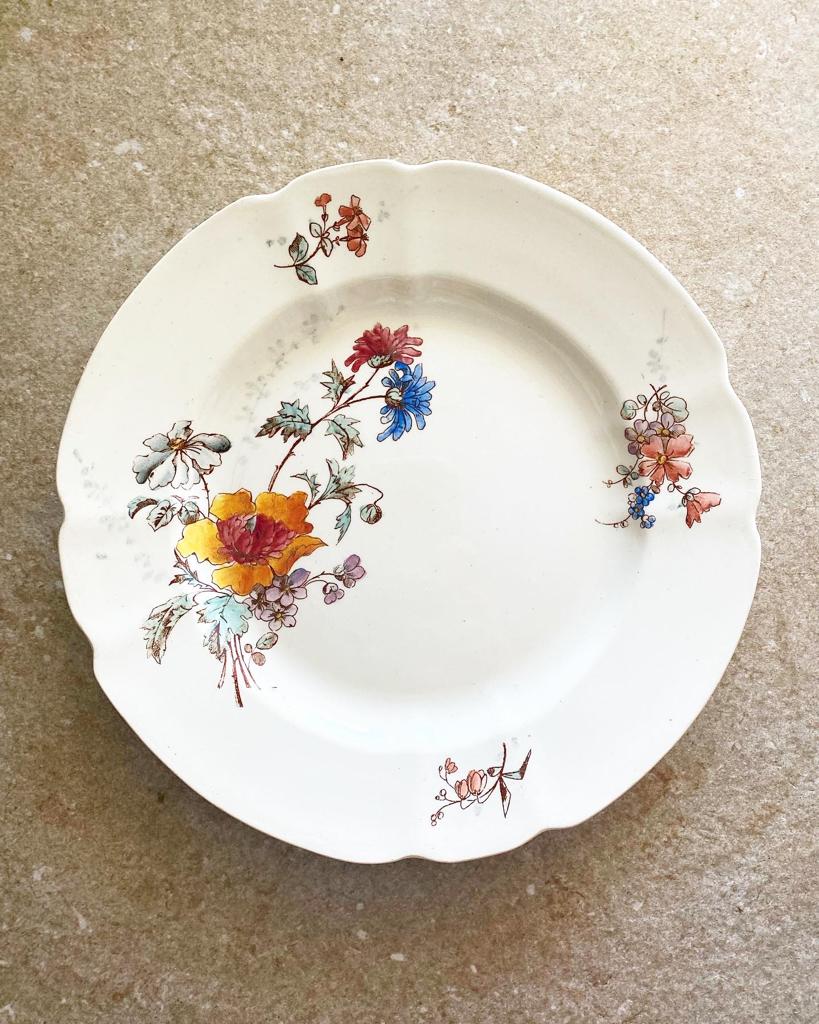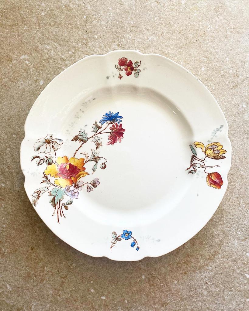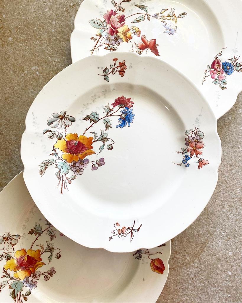 Lot de 3 assiettes plates en terre de fer polychrome E. Bourgeois