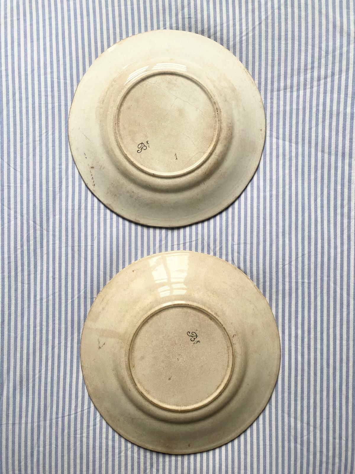 Lot de 2 assiettes à dessert en terre de fer polychrome