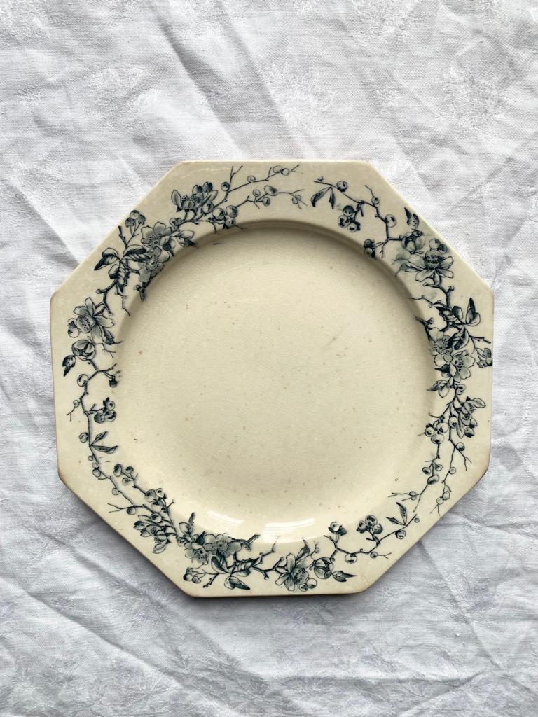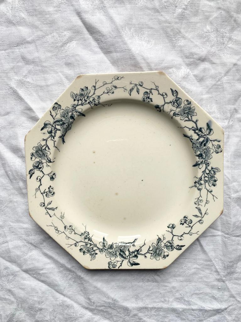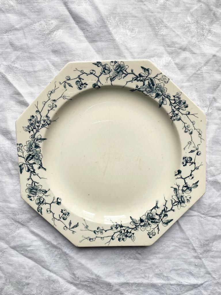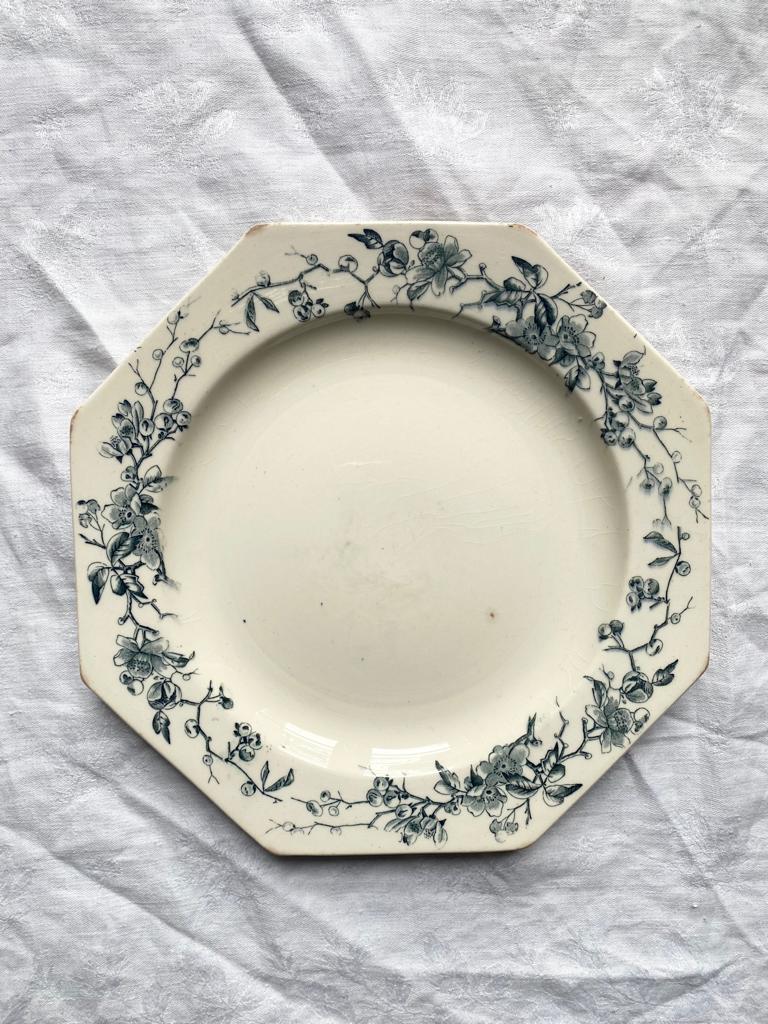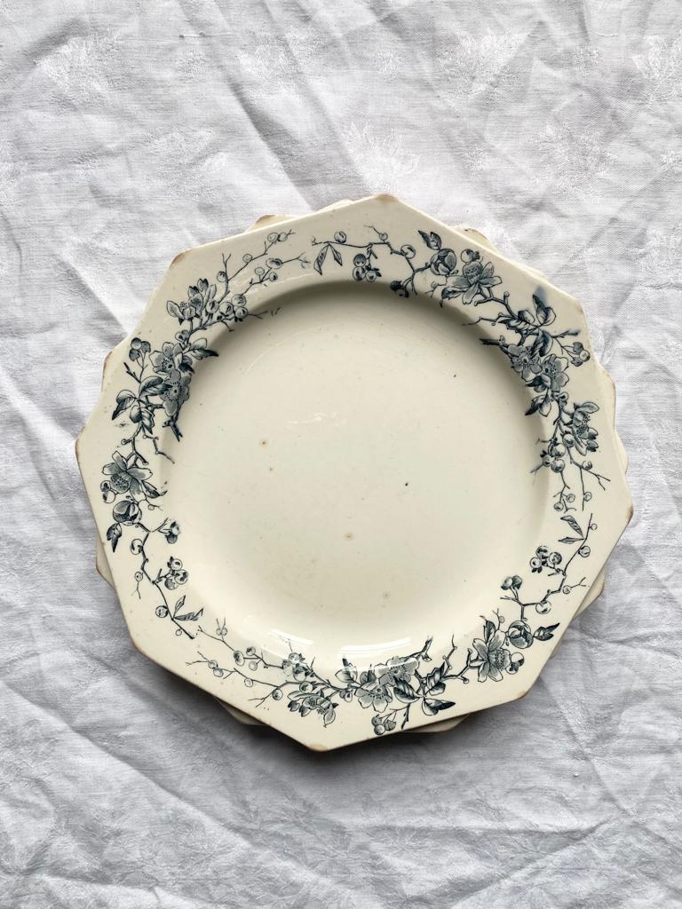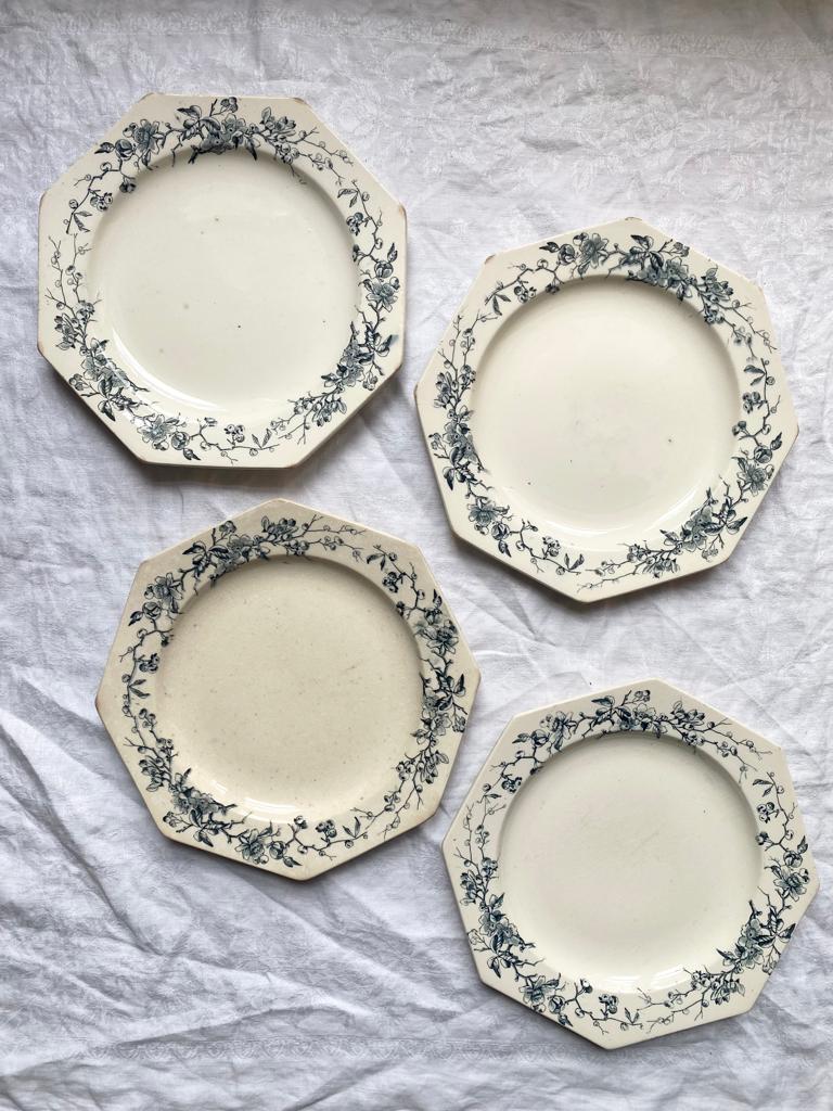 Lot de 4 assiettes plates octogonales en terre de fer anglaise
