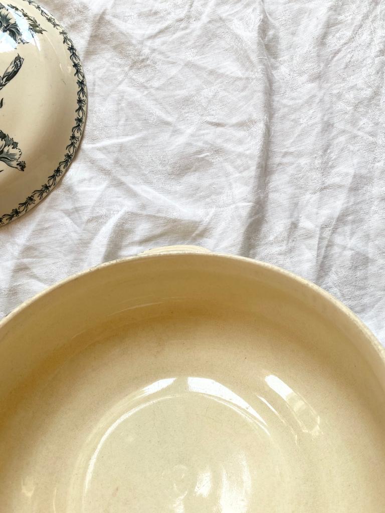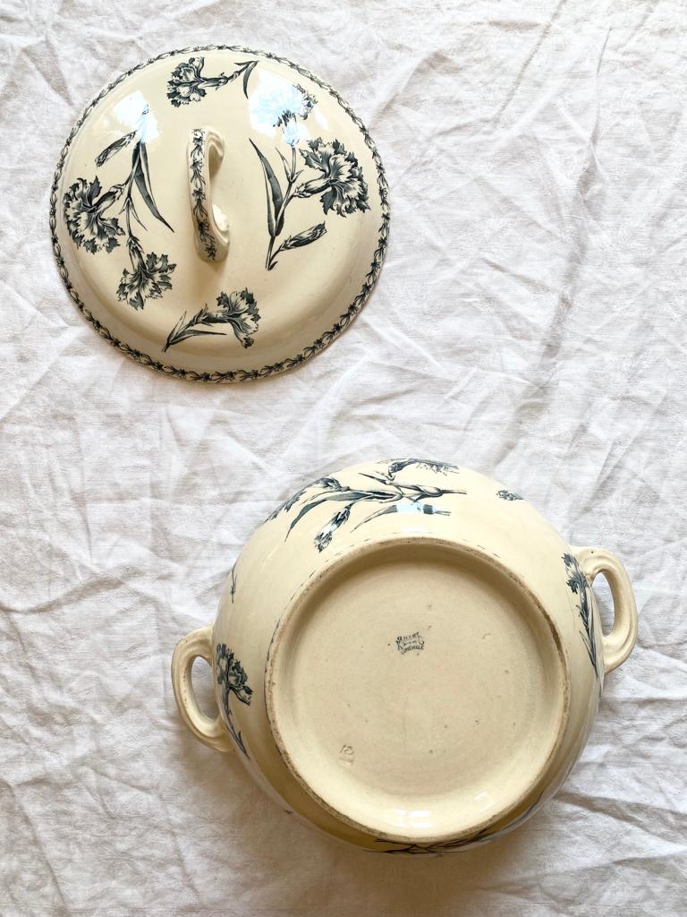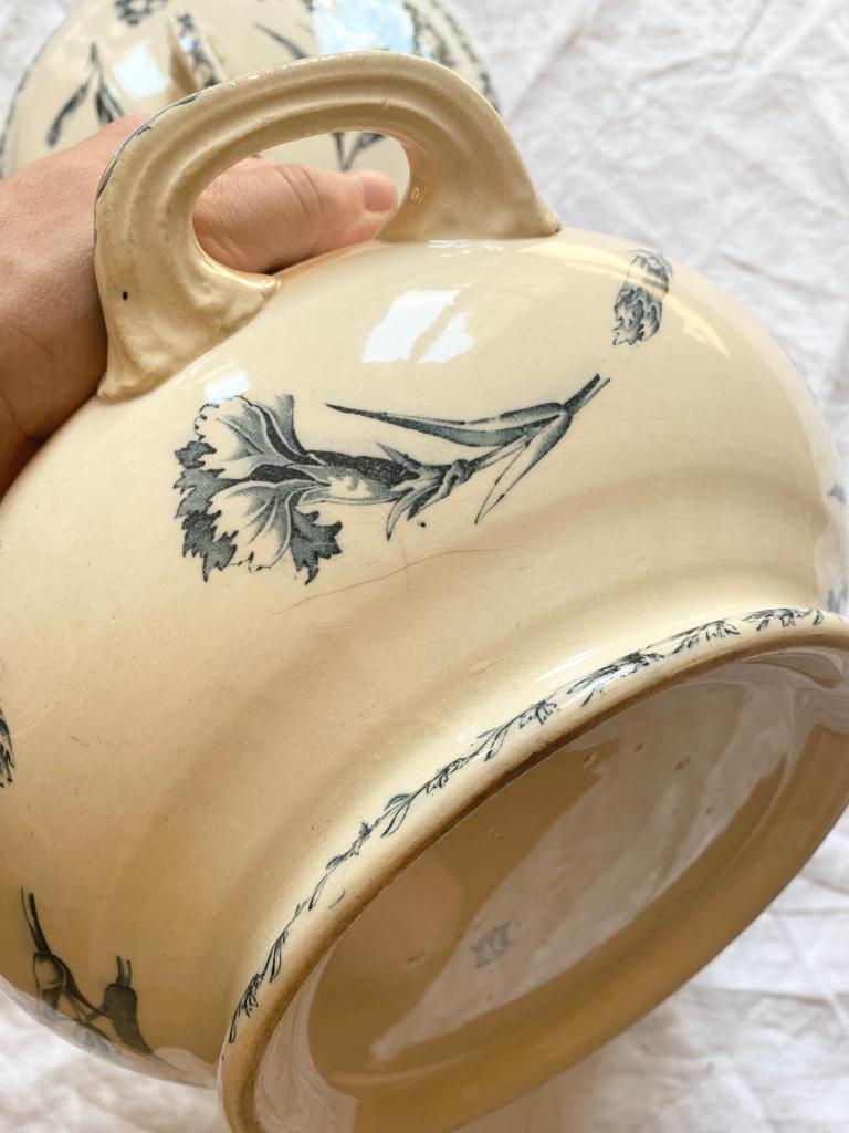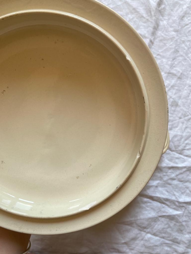 Très bon état mis à part un petit cheveu visible de l'extérieur mais pas de l'intérieur (donc fragilisation moindre) et des éclats à l'intérieur du couvercle - voir photos